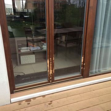 - Základní lazurový nátěr (Induline GW-360) naneseme na rám houbičkou, a to z důvodu celistvosti nátěru. Technologická přestávka 24 hodin.